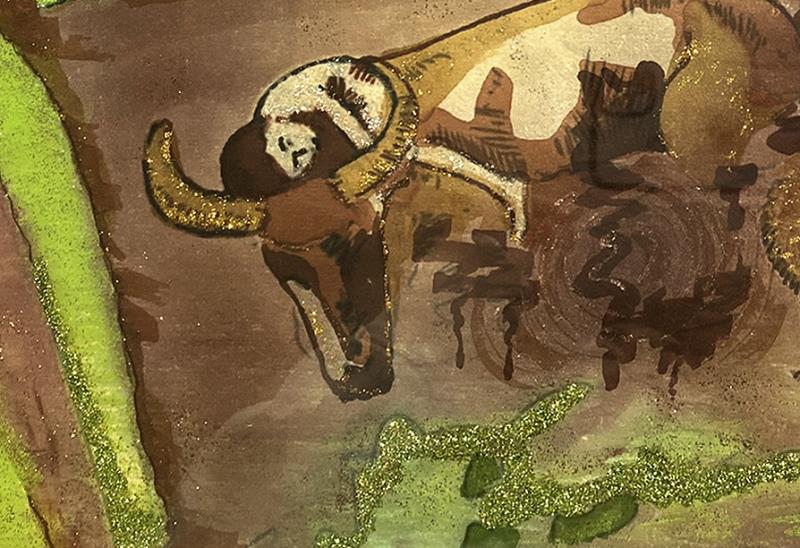 Series of 2 paintings and 1 print on wood. (Section 3 - Art 48-50-51)